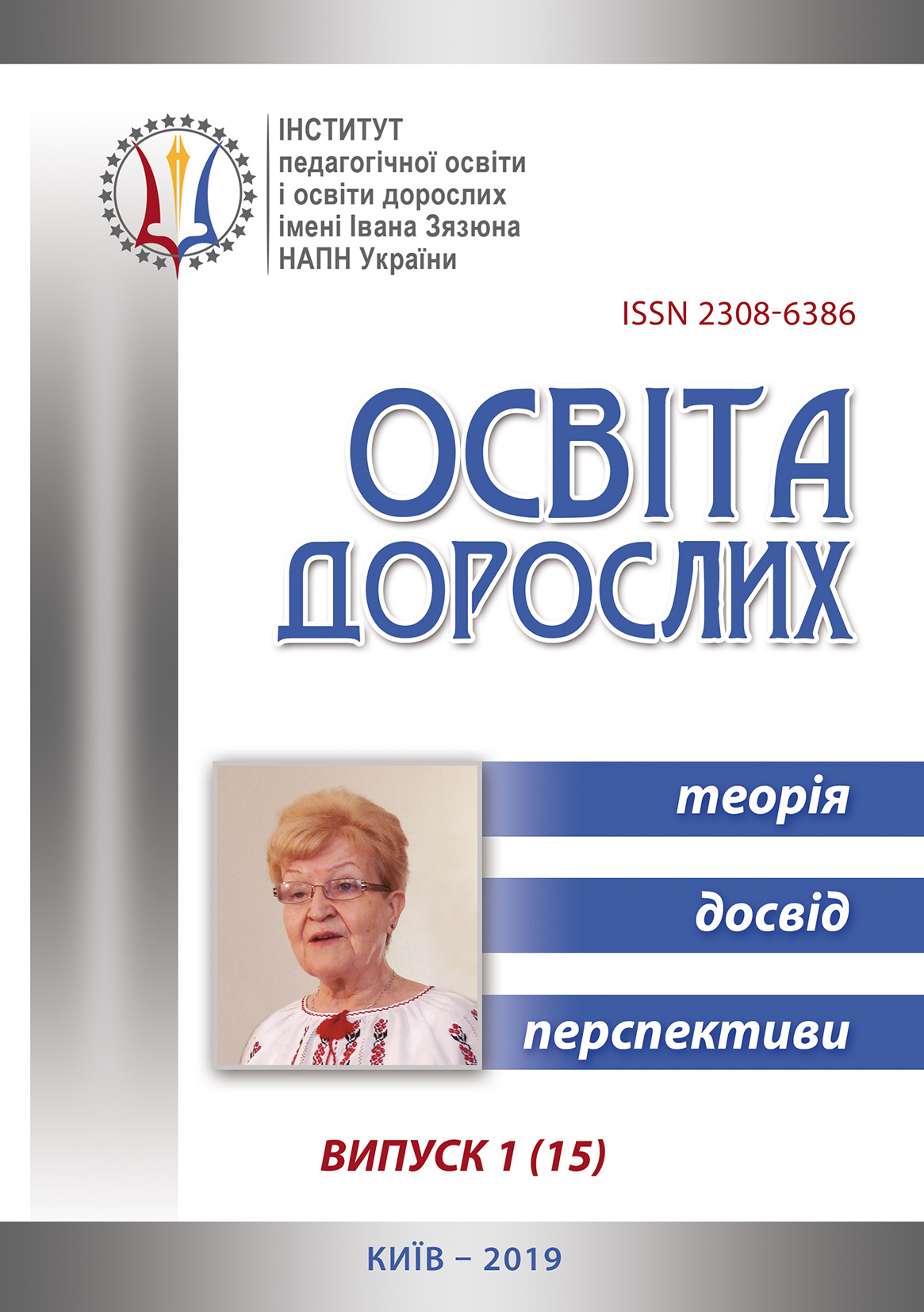 Освіта дорослих: теорія, досвід, перспективи: зб. наук. пр. / [редкол. Л.Б. Лук’янова (голова), Аніщенко О.В. (заступник голови) та ін.]; Ін-т пед. освіти і освіти дорослих імені Івана Зязюна НАПН України. Київ, 2019. Вип. 1 (15). 188 с.