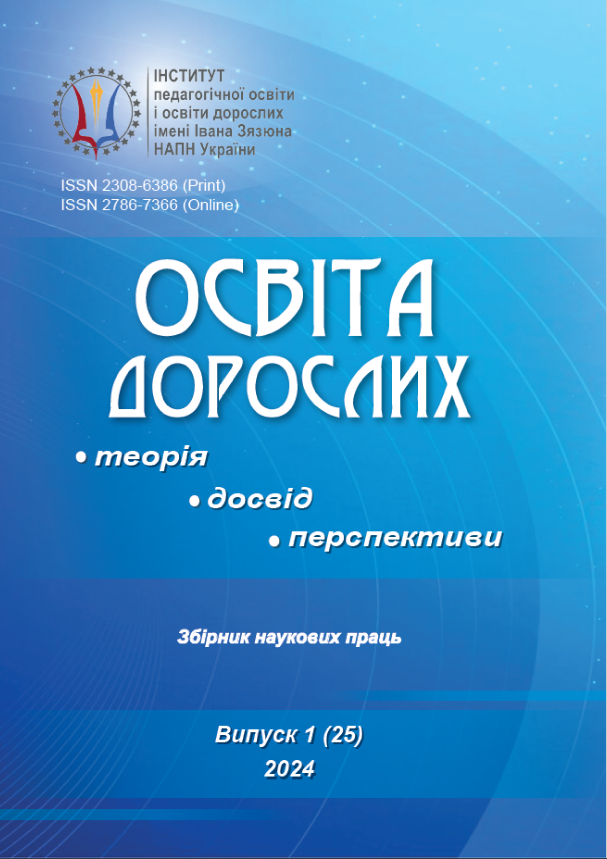 Adult Education: Theory, Experience, Prospects: collection of scientific papers / [Ed. Board: Lukyanova L. (Chief ed.), Anishchenko O. (deputy Chief ed.) and others]; Ivan Ziaziun Institute of Pedagogical and Adult Education of the NAES of Ukraine. Kyiv, 2024. Volume 1 (25). 192 p.